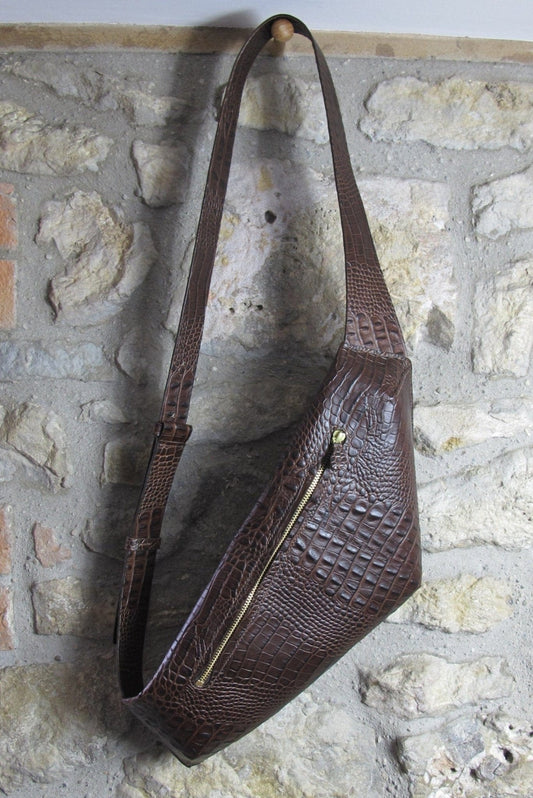 Handmade Leather Cross Body Bag | Croc emboss leather